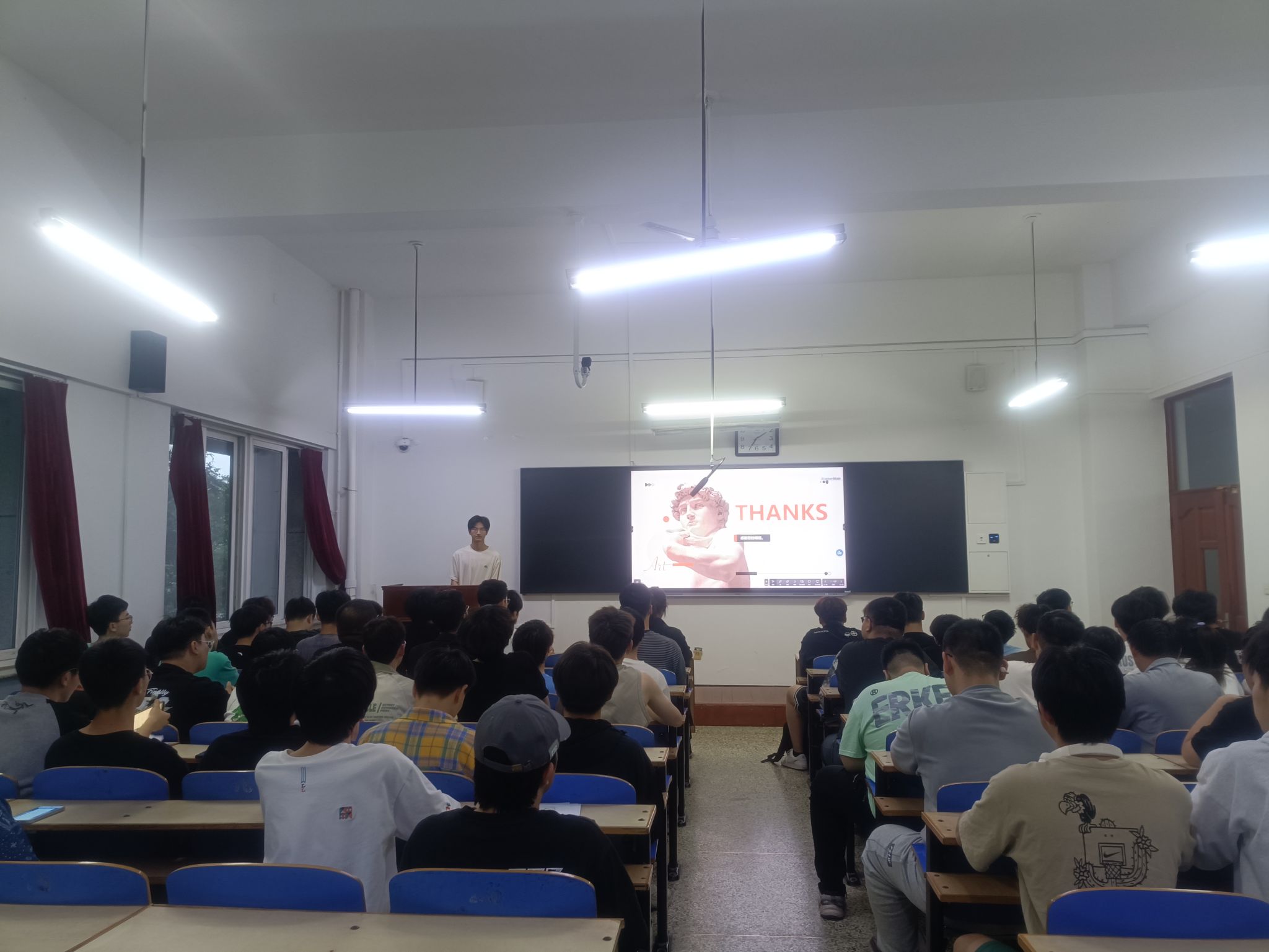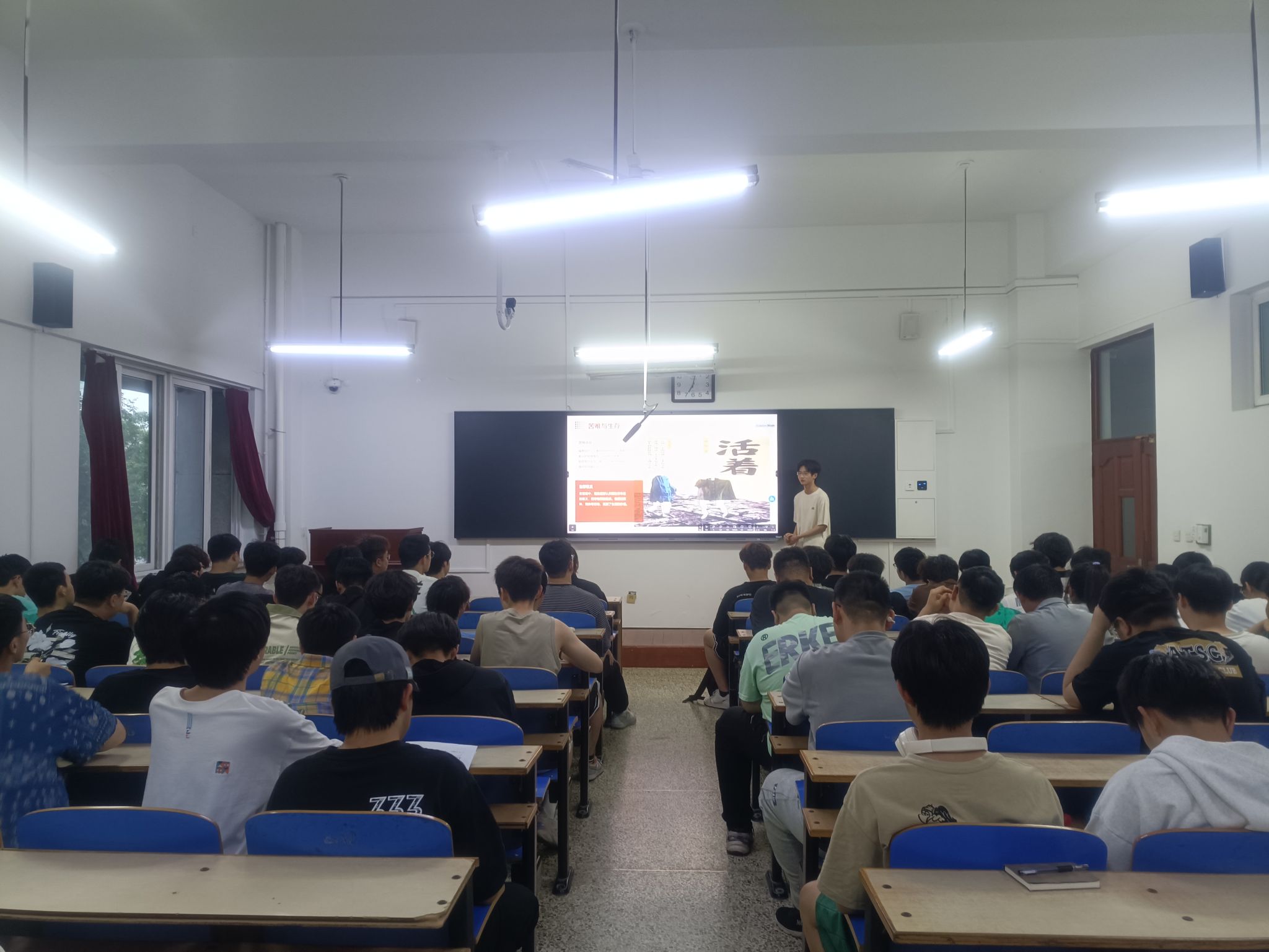 此次分享会上由小宝影院 素拓部王垚鑫担任主讲人,活动中他用他独特的视角和深刻的感悟,为在座的矿业学子带来了一场别开生面的阅读盛宴。他深入剖析了书籍《平凡的世界》,并表达了他对这本书关于人生、道德和哲学的思考,之后结合自己的经历和观察,提出了许多独到的见解。通过此次读书分享会,矿业学子更加深刻的理解了阅读不仅是为了获取知识,更是为了培养自己的思考能力和精神品质这一句话的含义。