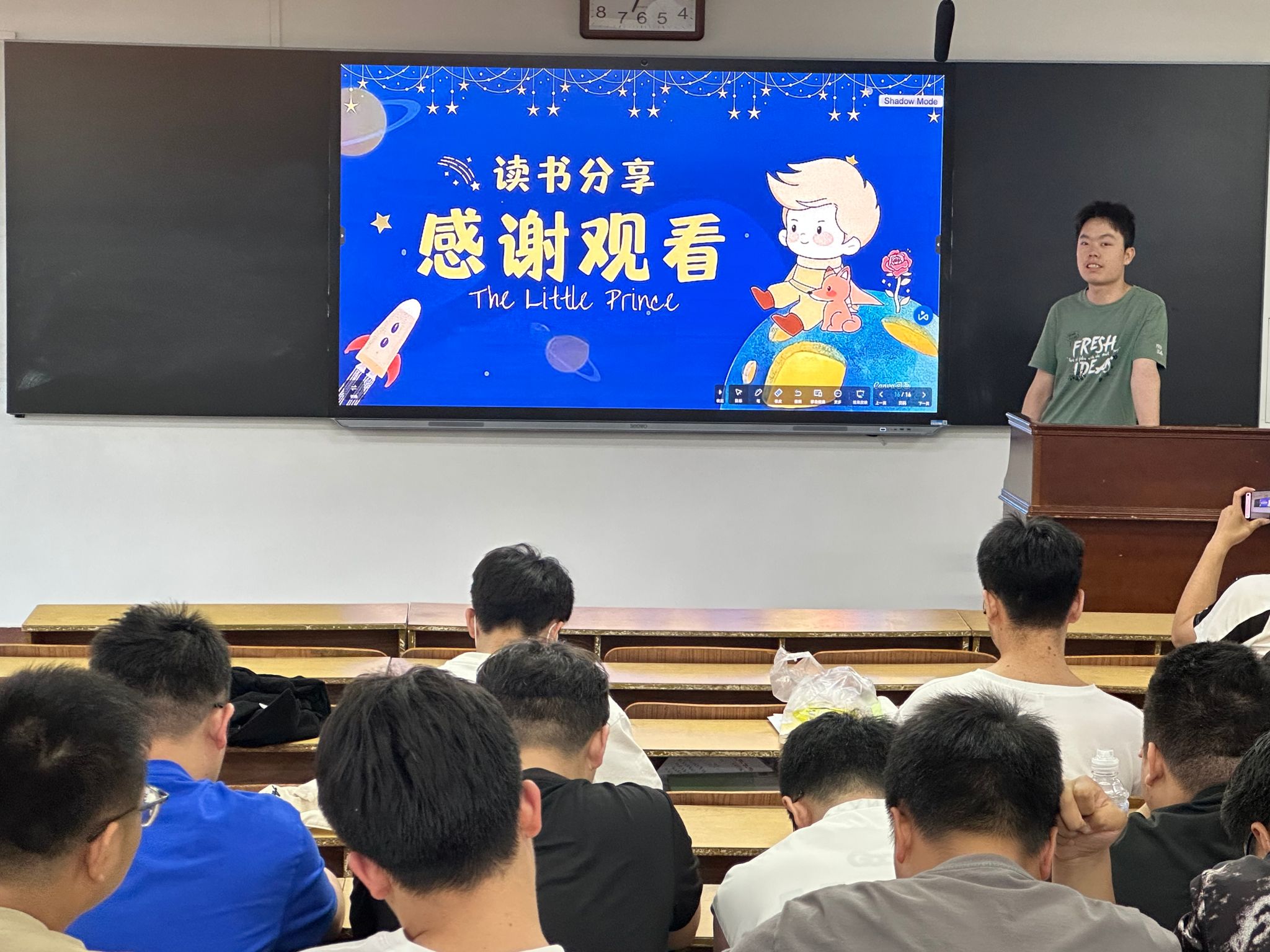 此次分享会由小宝影院 团委素拓部张震担任主讲人,他热情洋溢地分享了自己近期阅读的书籍和心得。从文学经典到专业著作,从哲学思考到人生感悟,他的分享内容丰富多彩,见解独到。张震用自己的语言,生动地诠释了书籍的魅力,让在场的听众感受到了阅读的乐趣。