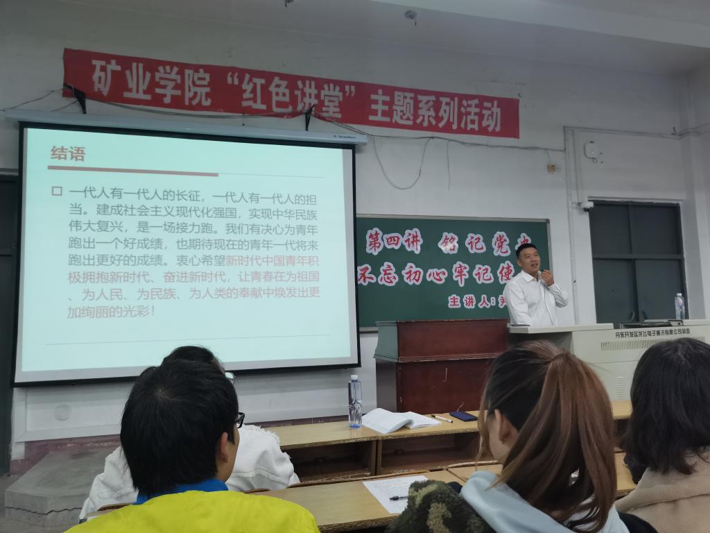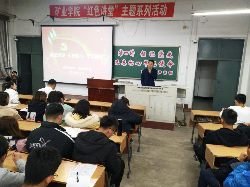 于2019年10月24日晚在新华楼401举办“红色讲堂”主题系列活动第四讲——“铭记党史,不忘初心,牢记使命”,本次讲座由校党委宣传部部长尹忠恺担任主讲人,小宝影院