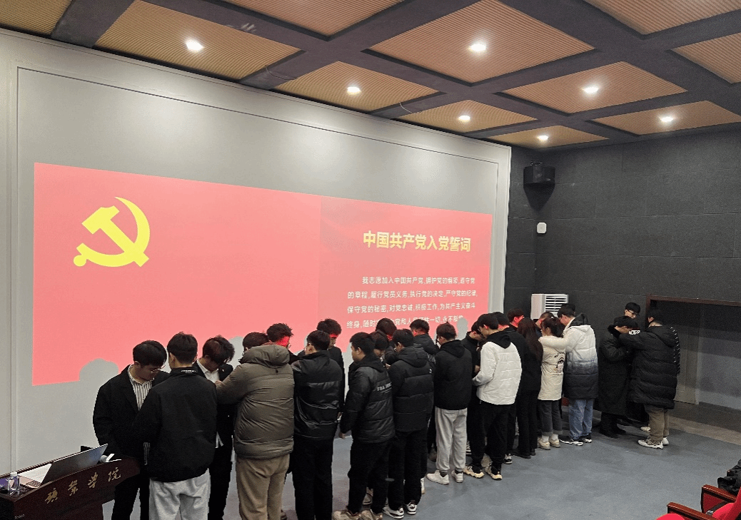 举行新发展党员入党宣誓仪式。学院党委书记乔和、党委副书记周云鹏出席,相关党支部书记以及新发展的预备党员参加宣誓仪式。仪式由党委副书记周云鹏主持。