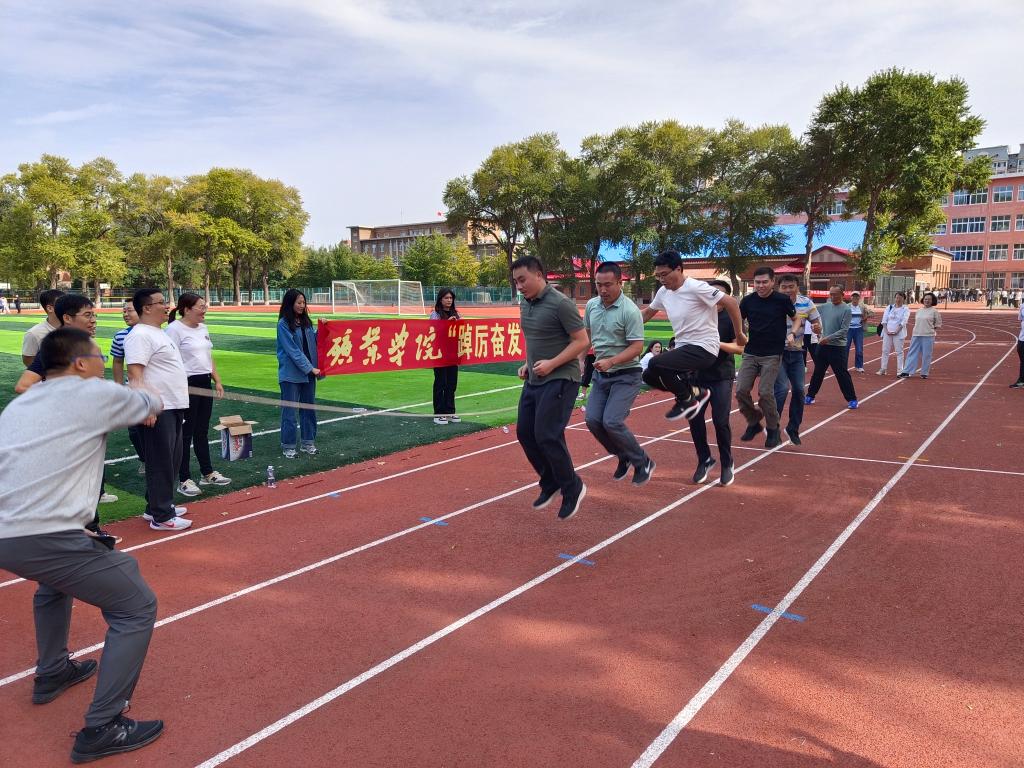 党委指导,学院工会组织的“凝心聚力奋勇向前”迎国庆趣味团体赛在中华路校区操场隆重召开。学院全体教师、学生裁判员参加了比赛。学院党委书记乔和、院长王东、党委副书记聂仁东和学院工会主席陶梅等亲临现场,与教师同场竞技,为队员加油助威。