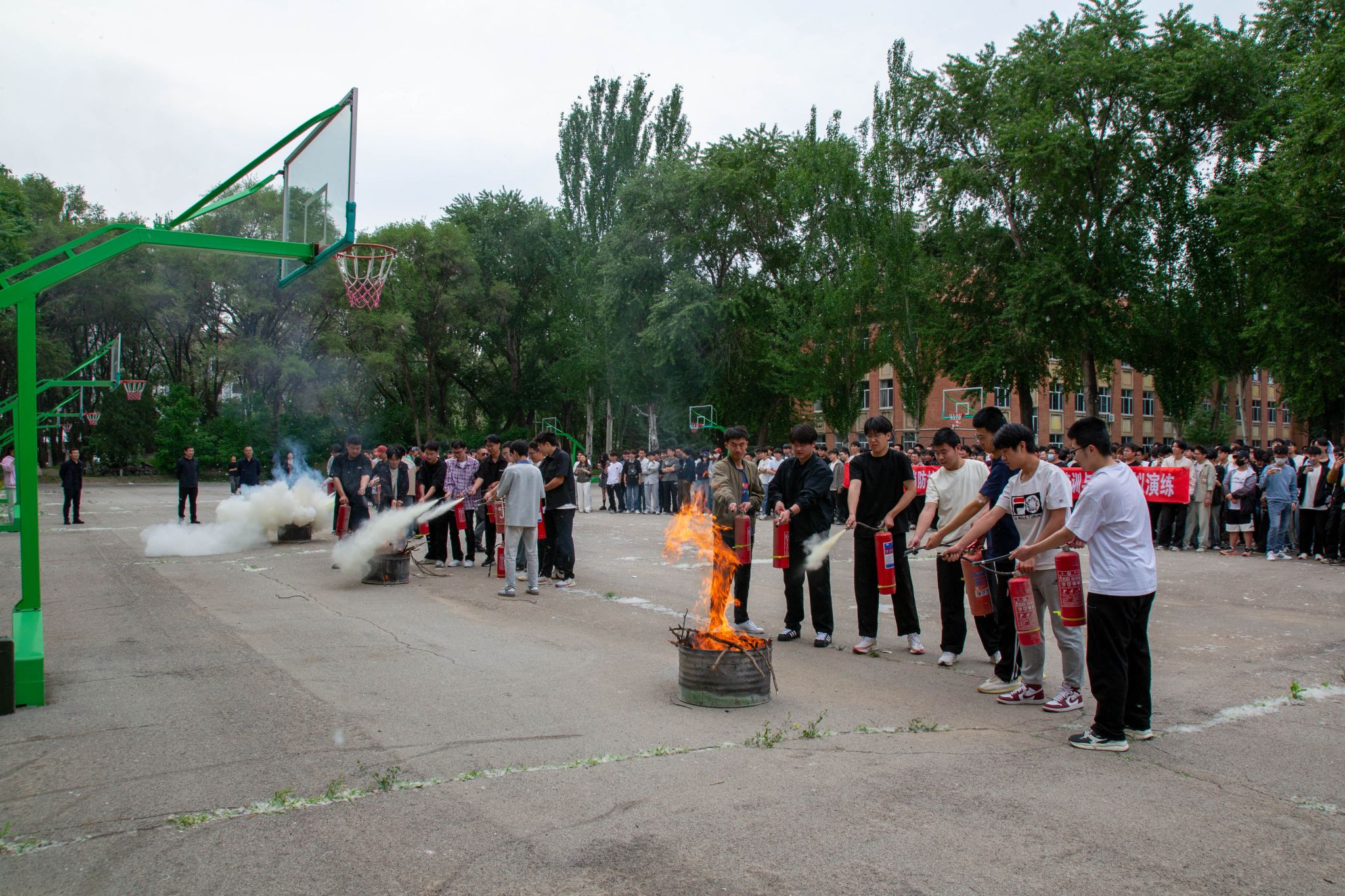 活动伊始,于英介绍了此次消防安全培训与应急模拟演练活动的目的和注意事项。接着,王亮科长详细讲解并演示了干粉灭火器的使用方法。同学们也积极参与进行实操演练,面对火源,精准完成灭火操作。灭火演练结束后,同学们在中华路校园3舍进行了安全疏散模拟演练,演练同学迅速用毛巾捂住口鼻、低姿快速通过烟雾区,充分展现了日常安全教育的成果。