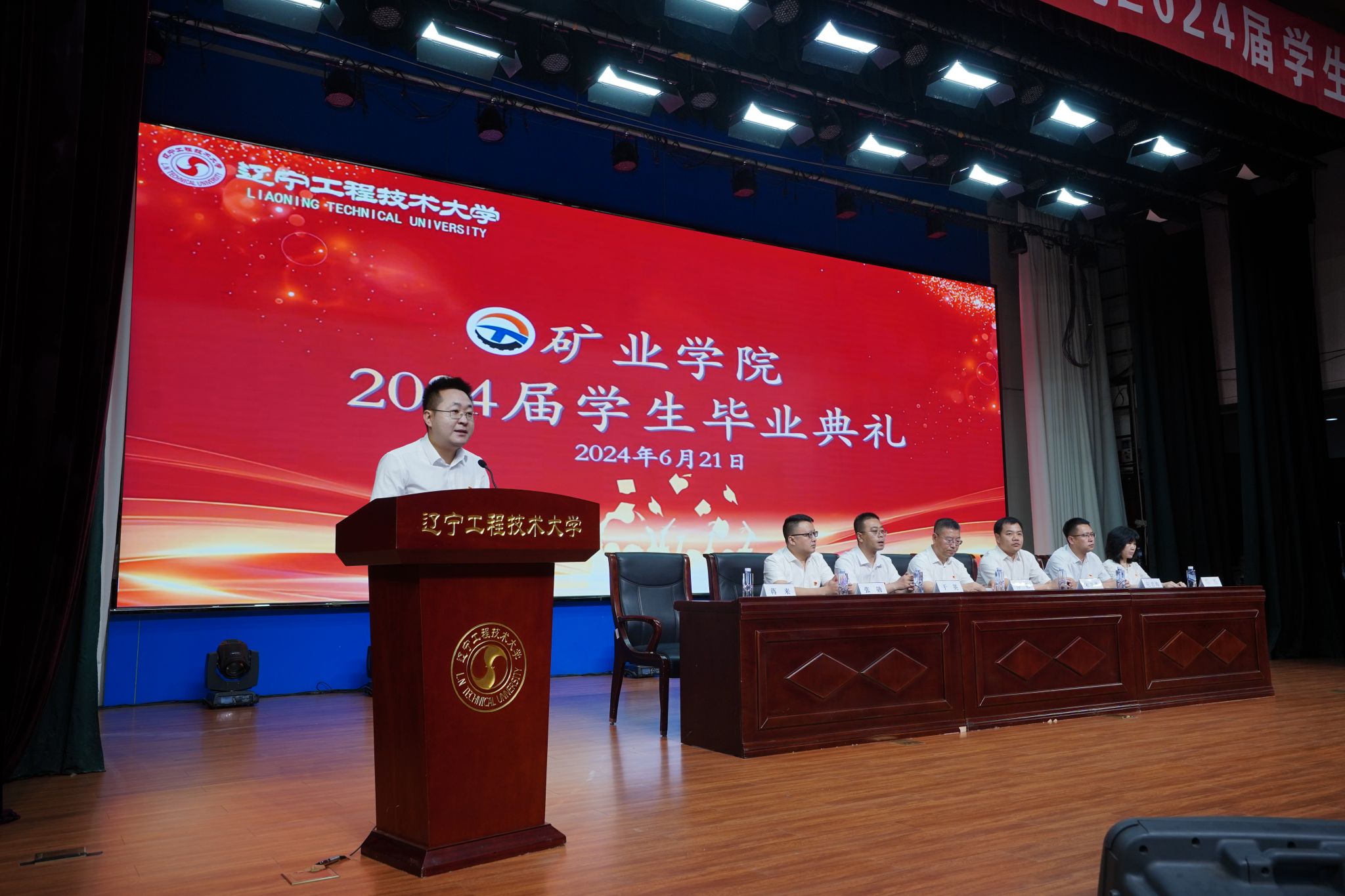 学院党委书记乔和代表学院向即将走出校门的毕业生们致以最热烈的祝贺和最美好的祝愿。他回顾了同学们在学院度过的青春岁月,希望毕业生们能够牢记母校的教诲,保持矿业学子的优良传统和作风,在未来的道路上不断前行、追求卓越。并且鼓励大家要勇于担当、敢于创新,将所学知识与实践相结合,为国家经济建设做出自己的贡献。