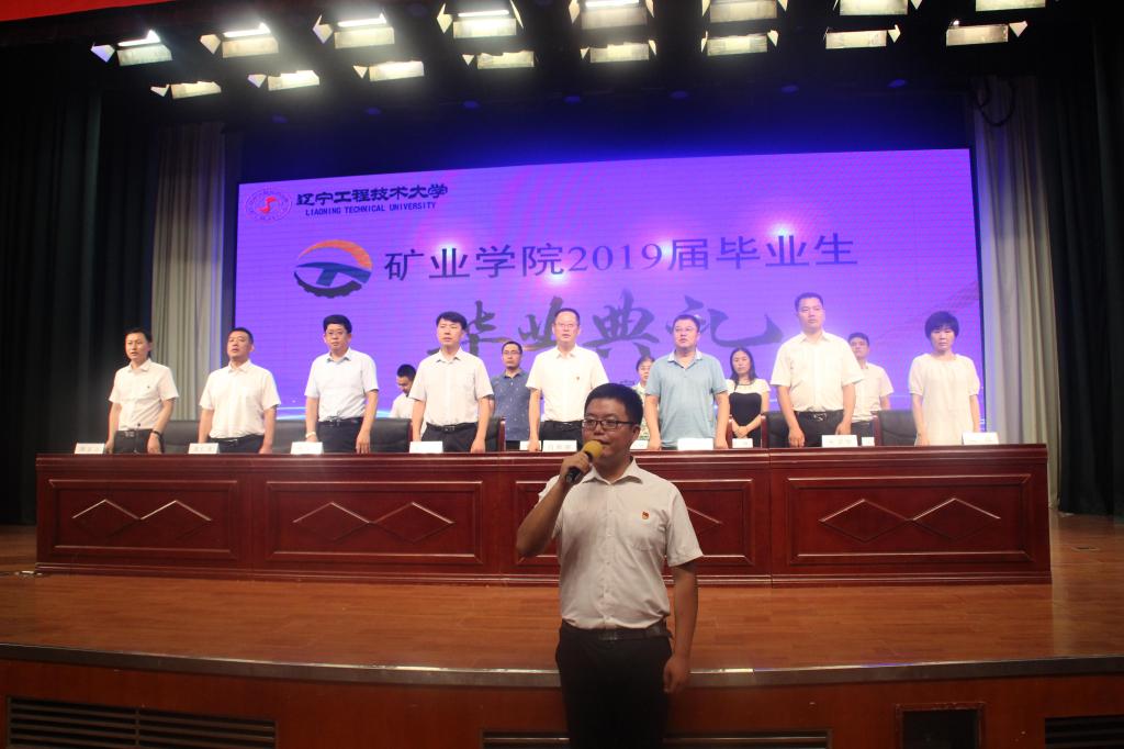 2019年6月26日,矿业学院2019届毕业生毕业典礼暨学位授予仪式在国际会议中心报告厅隆重举行。学院党委书记肖辉瓒、副院长(主持工作)韩军、党委副书记聂仁东、副院长王东、副院长马志军、副院长宋卫华、机关各科室及各系部中心主任出席了毕业典礼。典礼由学生工作部主任周玉祥主持。
