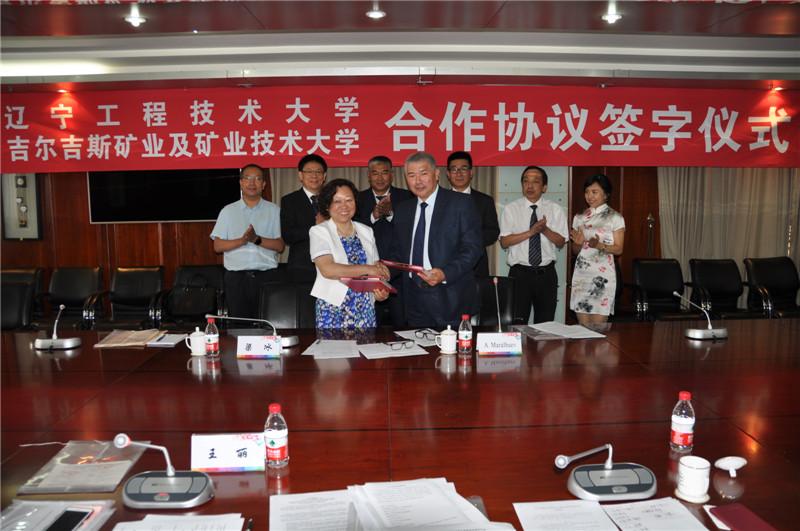 双方就学生联合培养、成立中吉矿业研发中心、招收多层次留学生等事项进行了深入探讨并达成共识。梁冰校长和马拉尔巴耶夫校长代表双方签署了合作协议。签约仪式的圆满成功标志着未来两校将在人才培养、学科建设、对外交流与合作等多方面进一步开展深入合作,创新机制,携手共进,必将使双方联合办学、科技研发及国际合作水平提高到一个崭新的阶段。
