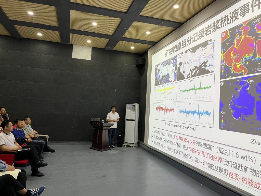 报告会上,翟德高教授从科学问题提出、成矿特征、成因认识和主要结论等四个方面分享其团队在中国东北部地区巨量银富集成矿方面研究的最新进展。朱志敏研究员则是以青铜器时期、工业革命时期和现代科技快速发展时期中的金属铜所扮演的重要角色为引线,深入浅出的作了一篇题名为“扬子西缘拉拉地区铜矿成矿模式及勘查意义”的学术报告。