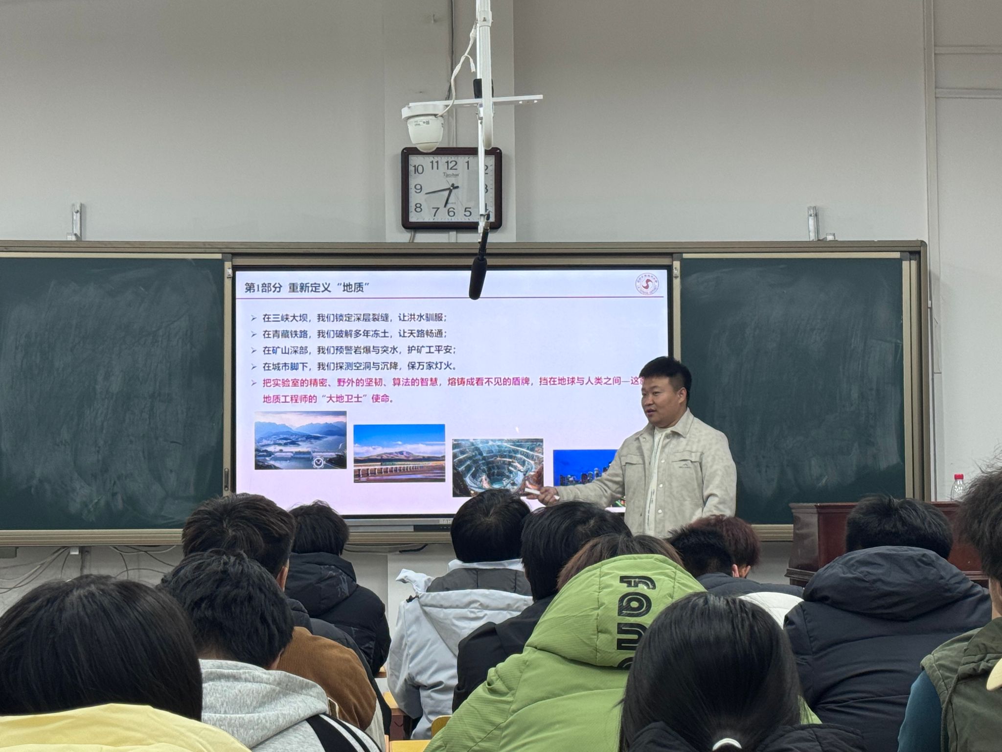面向2025级地质工程专业新生,在新华楼110成功举办“地质工程导论:开启地球科学之旅”科研讲座。本次讲座由李鹏飞老师担任主讲,旨在帮助新生建立专业认知,明晰专业知识体系与未来发展路径。