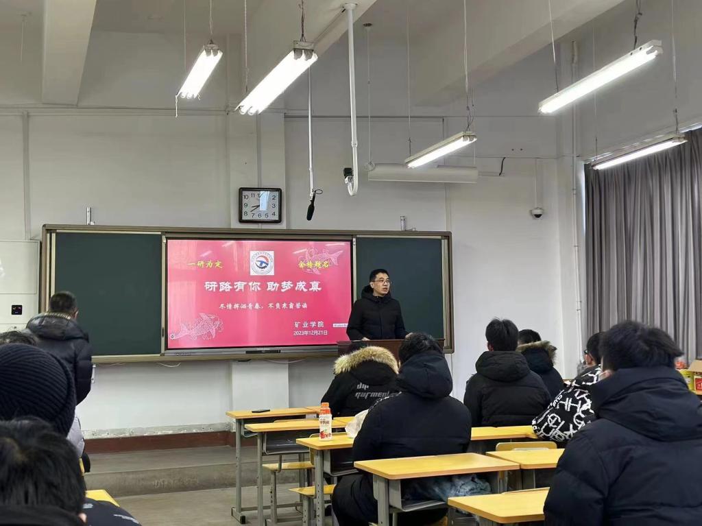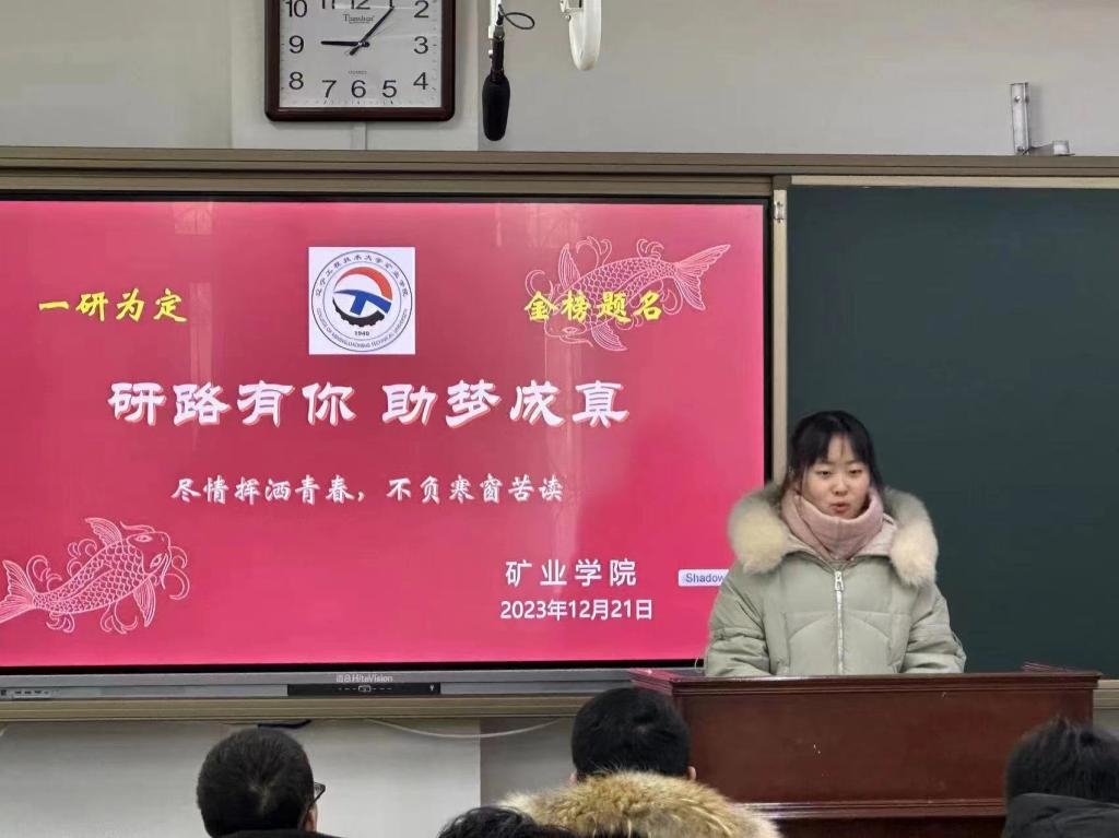 学院党委副书记周云鹏为考研学生强调了考风考纪,要求大家严格遵守考试的相关规定,同时详细介绍了考研过程中应注意的事项。提醒大家,一定带好考试必需品、注意饮食安全、保证睡眠等,并祝愿大家在考试中取得优异成绩。学院副院长张勋为考研学生作考前动员,并为大家加油鼓劲。建议一定要学会放松心情,缓解紧张状态,做好最后冲刺,在考试中发挥出最好水平。考研学生代表荆曌怡同学发言,荆曌怡同学介绍了自身考研备考过程中在遇到困难和压力时是如何应对解决的,也述说了自身在备考过程中有了哪些收获,并为今年的考研学子送上了真诚的祝福,祝大家“梦想成真 一战成硕”。