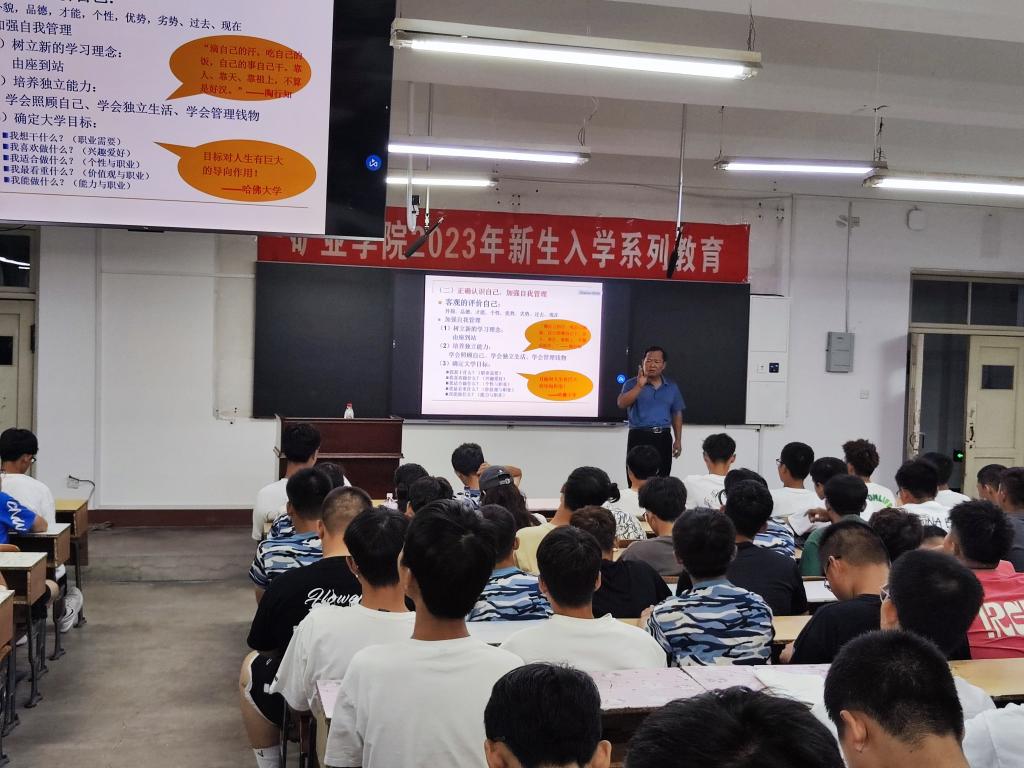 于新华楼208教室举办2023级新生入学教育系列活动第五讲——心理适应教育,学院邀请肖文学教授主讲,全体2023级新生参加。