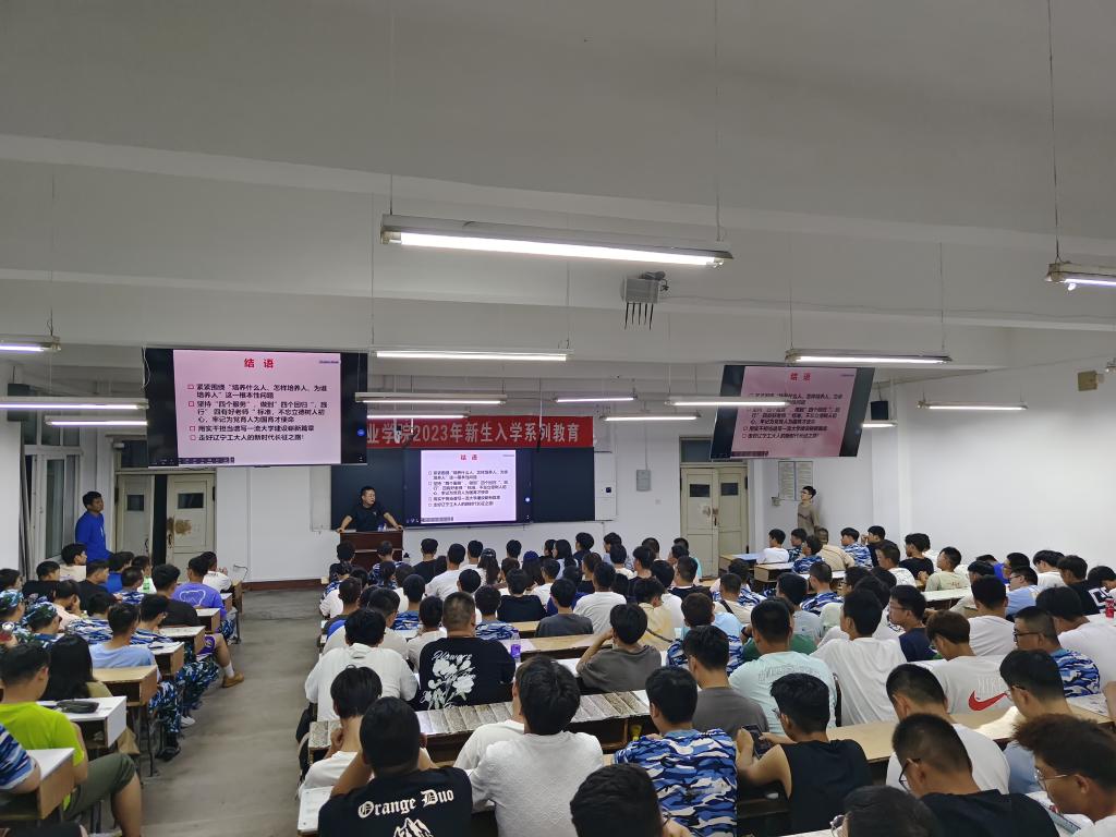 首先,蒋来老师向同学们强调学风、考风及日常纪律作风要求,希望新生能够尽快适应大学生活节奏,提前做好四年学业计划,踏实生活,安心学习。随后,蒋来老师为同学们讲解辽宁工大奋斗发展史及学校独特的大学精神文化,使新生从学校的发展中领略到历届辽宁工大人的奋斗风采,希望同学们能够领悟辽宁工大“朴实无华,坚韧顽强,无私奉献”的太阳石精神,感受学校厚重的底蕴。最后,蒋来老师提醒新生一定要注重宿舍消防安全、个人信息安全、人身安全,谨防电信诈骗等。