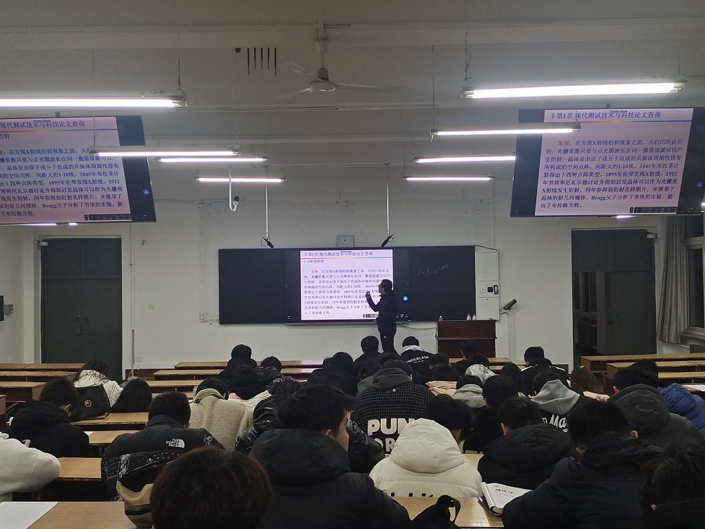 于新华楼402教室开展科研训练讲座—“现代测试技术与大学生科技论文查阅、写作技能训练”,本次讲座邀请窦魁洲老师担任主讲人、通讯员(蒋来),旨在提高大学生的科技论文查阅、写作技能,培养具有创新精神和实践能力的科研人才。