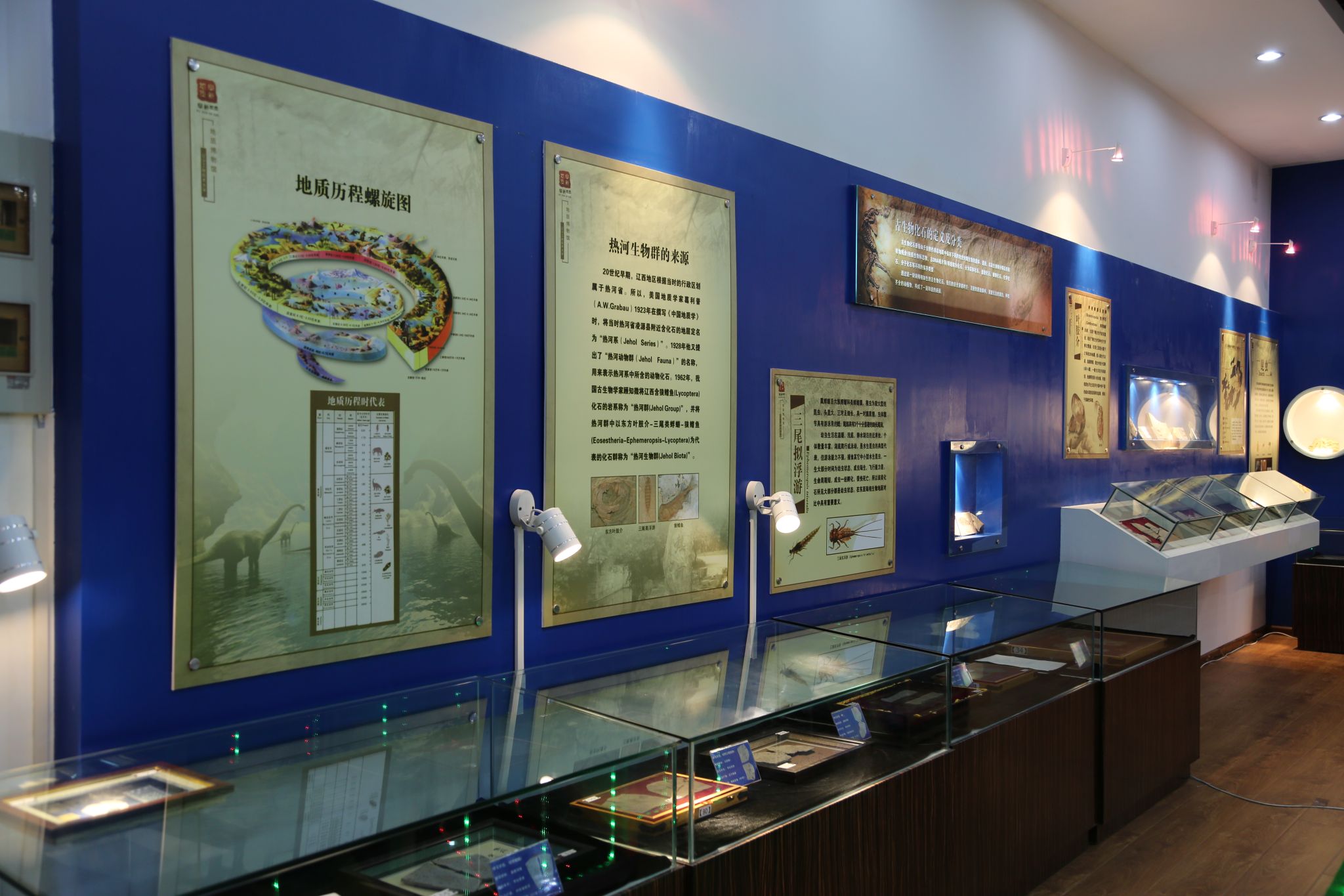 展厅于2015年建成并开放,主要陈列热河生物群脊椎动物化石。热河生物群是指大约1.4亿-2亿年前生活在东亚地区的一个古老的生物群,以中国辽西的义县、北票、凌源等地区为主要产地,素有“20世纪世界最重要的古生物发现之一”和“世界级的古生物化石宝库”等美誉,近日习近平总书记赠予法国总统马克龙的恐龙复原模型-赫氏近鸟龙即产于此处。